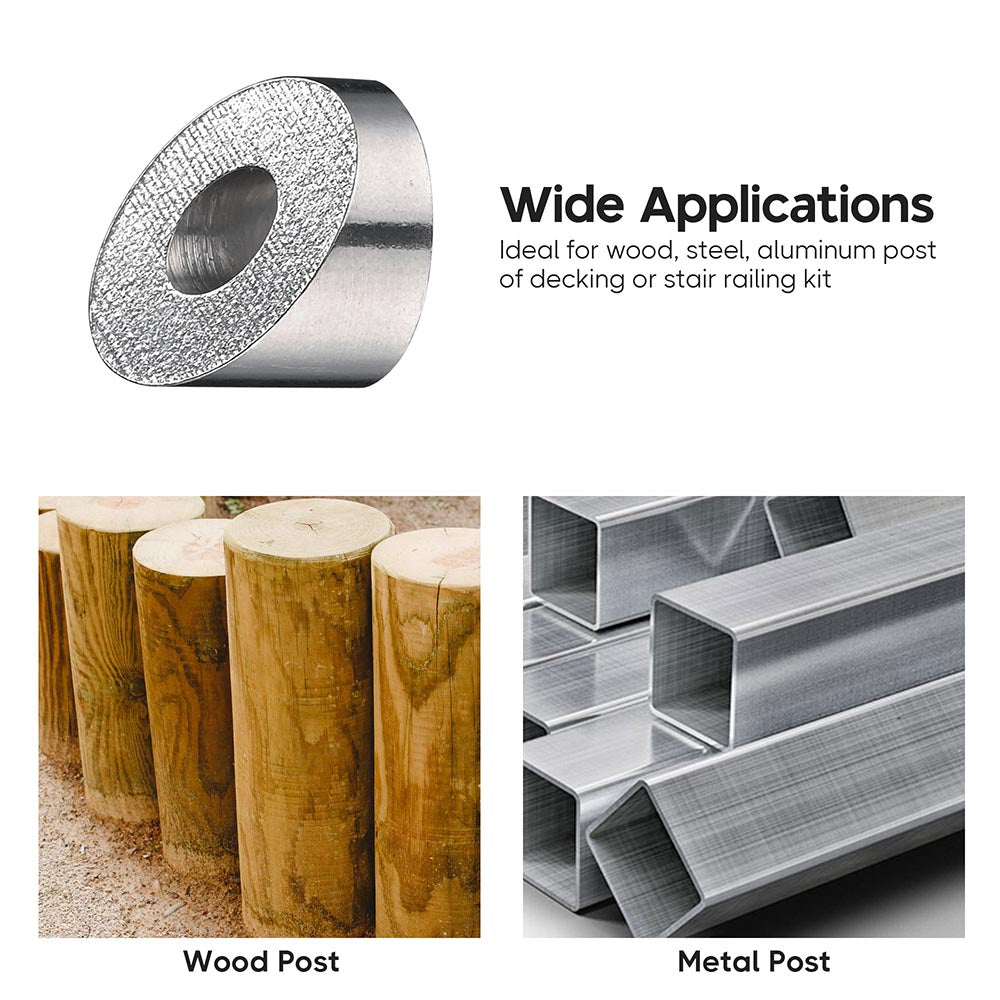 - Wide Applications - Useful hardware accessories for helping you to DIY cable railing project and big scale indoor and outdoor applications, ideal for using on wood, steel, aluminum posts on decking, stairs and aisle railing at home, garden, walkway, corridor, etc