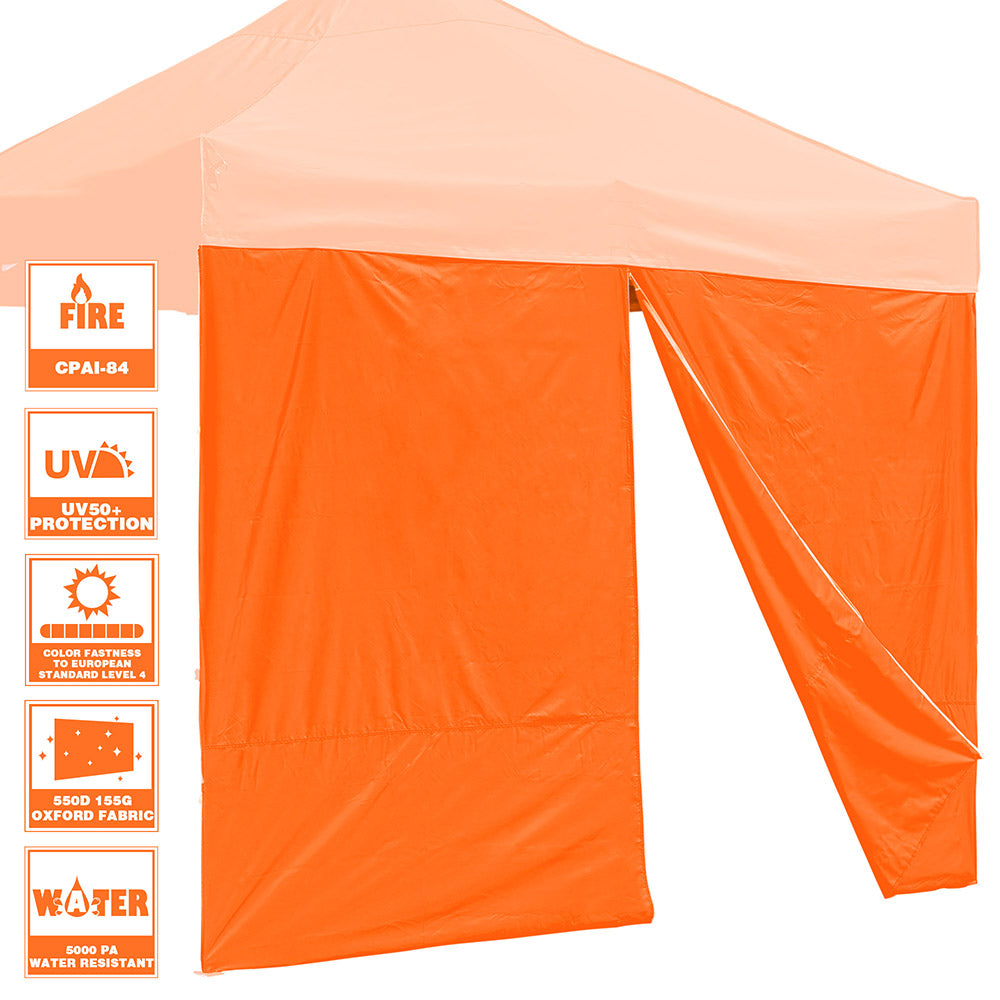 10'Lx7'H Sidewall Curtain with Zipper design for easy in and out, fits for 10x10, 10x20 Popup Canopies. Made of thicken oxford fabric and meets CPAI-84 Flame Retardant Standard, great for outdoor commercial market, trade fair and covered patio. Protect from wind, snow and rain, creating a outdoor option with heater in winter.
