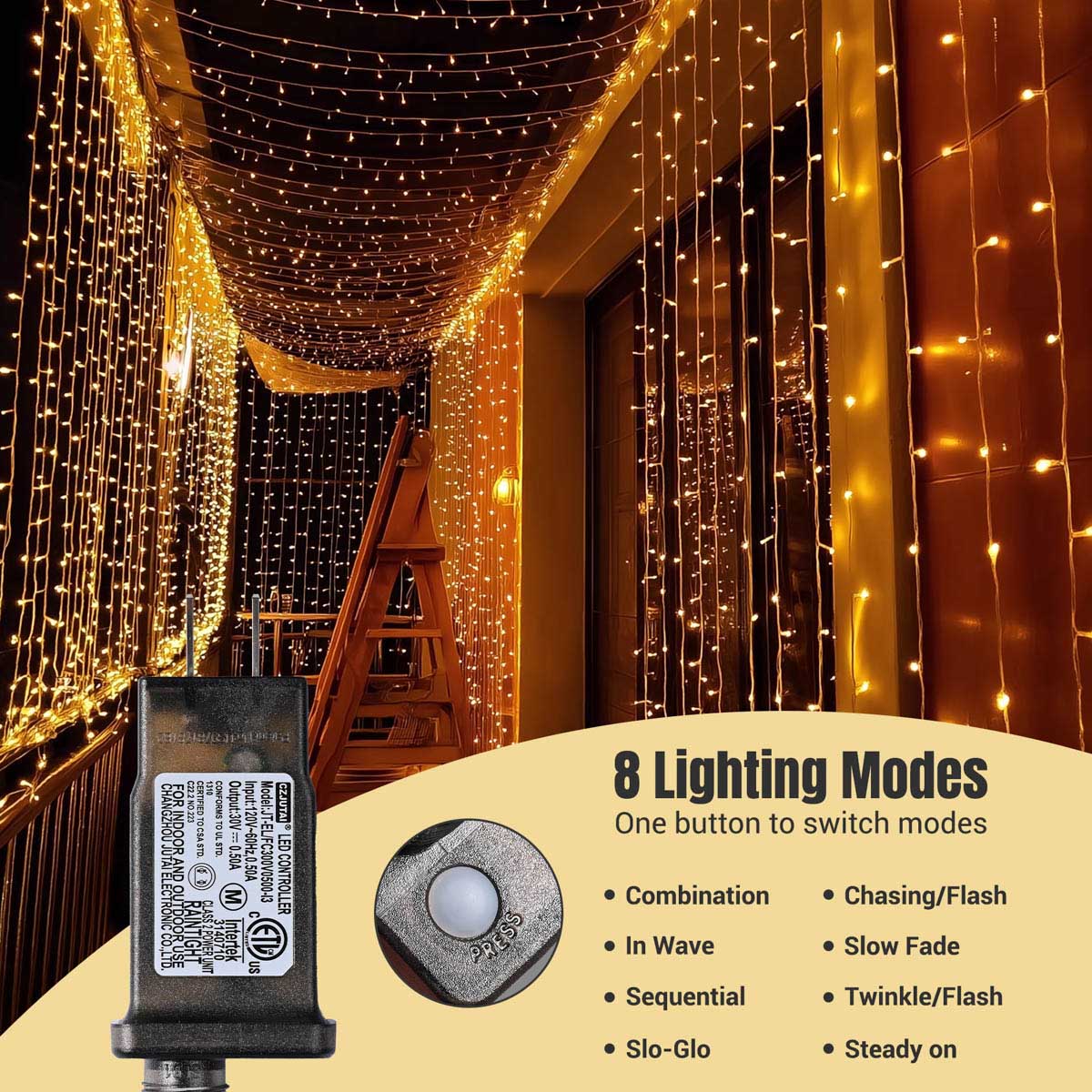 - 8 Twinkle Modes - Tailor the mood for any occasion with pre-set lighting modes by easily pressing the button, including Combination, In Wave, Sequential, Slo-Glo, Chasing/Flash, Slow Fade, Twinkle/Flash, and Steady on