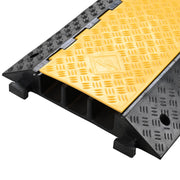 - High-Visibility & All-Weather Traction: Each of the three channels features a bright yellow, flip-open lid that creates a highly visible safety zone and acts as a speed bump. The deep, anti-slip tread pattern ensures traction for vehicles and personnel in all conditions, from muddy construction sites to slick event floors.