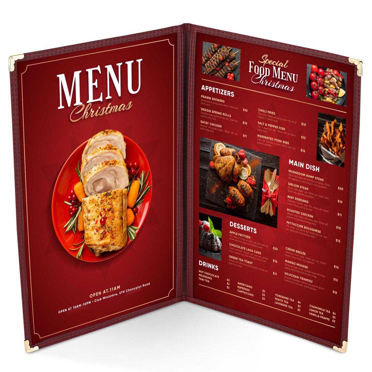 - Book-Style 8-View Menu Cover - 20x Durable Menu Covers