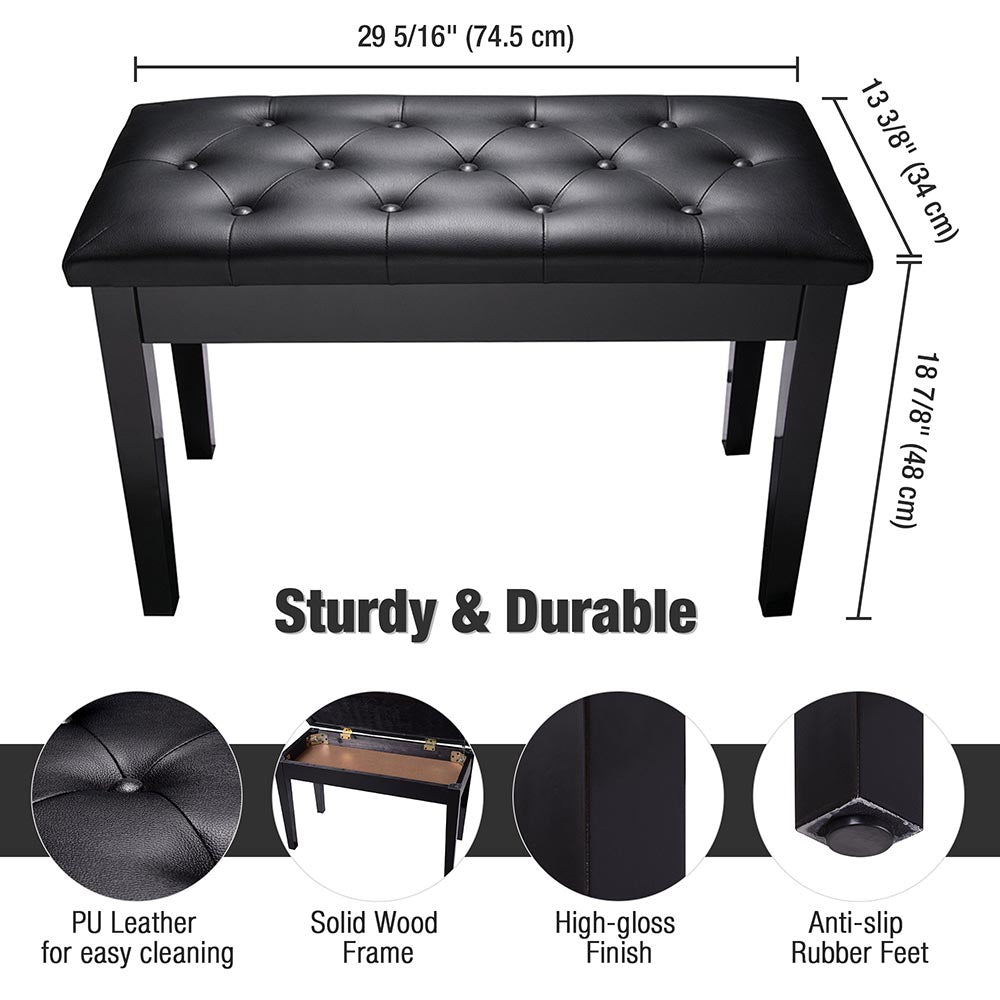- Duet Concert Piano Bench can seat up to 2 people, made of ergonomic upholstered cushion