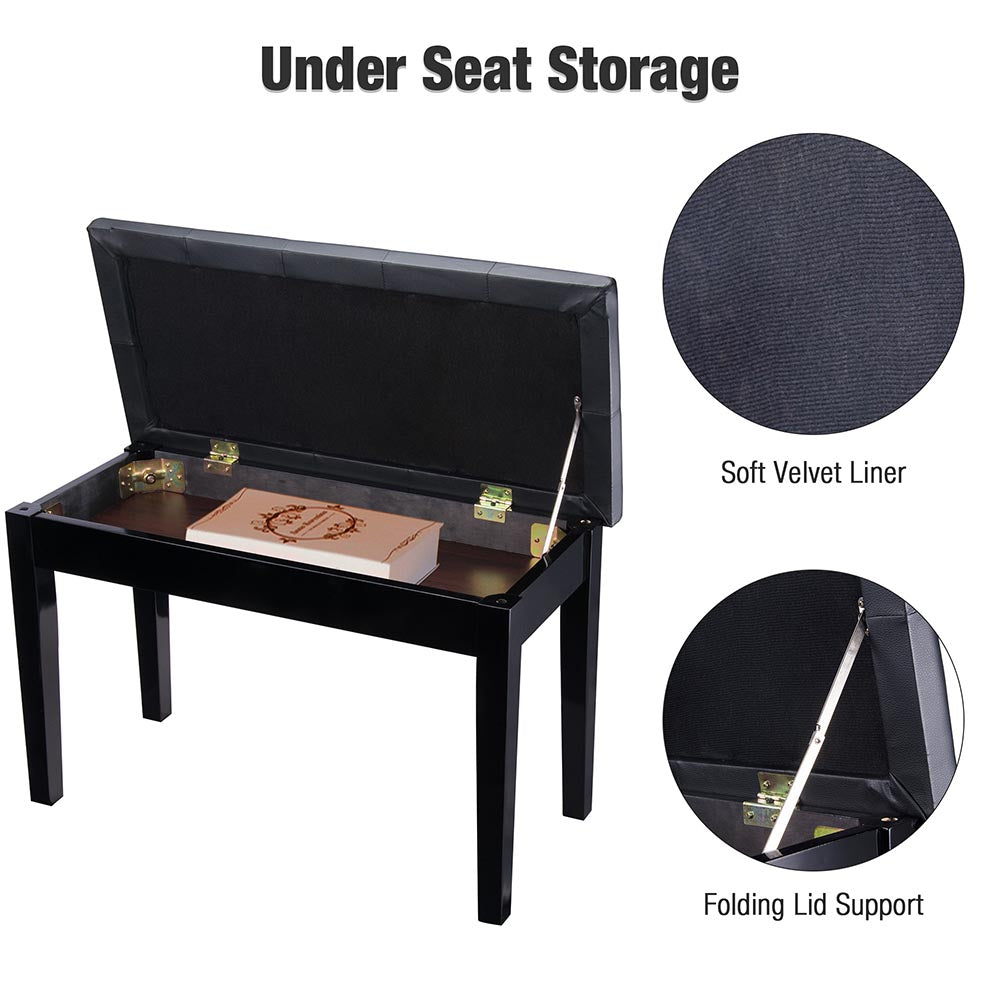 - Storage compartment hidden beneath seat is spacious enough for holding sheet music and books