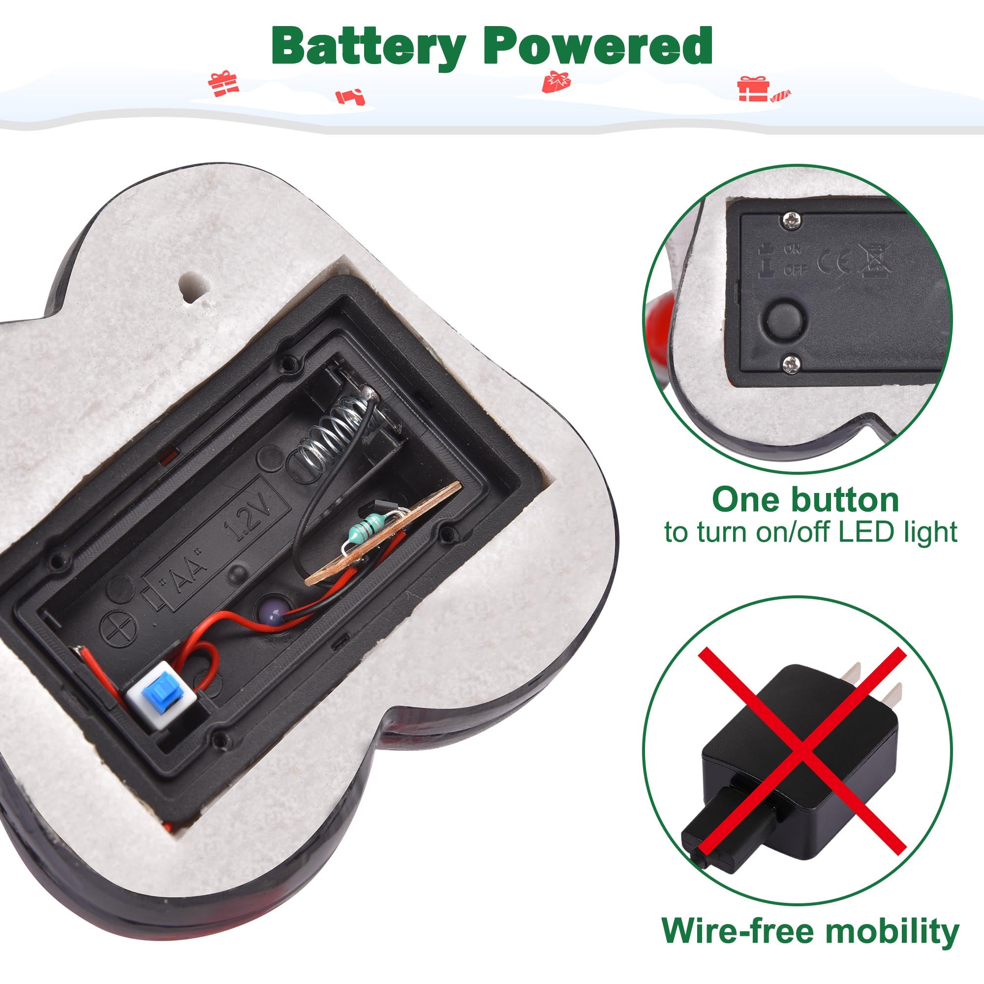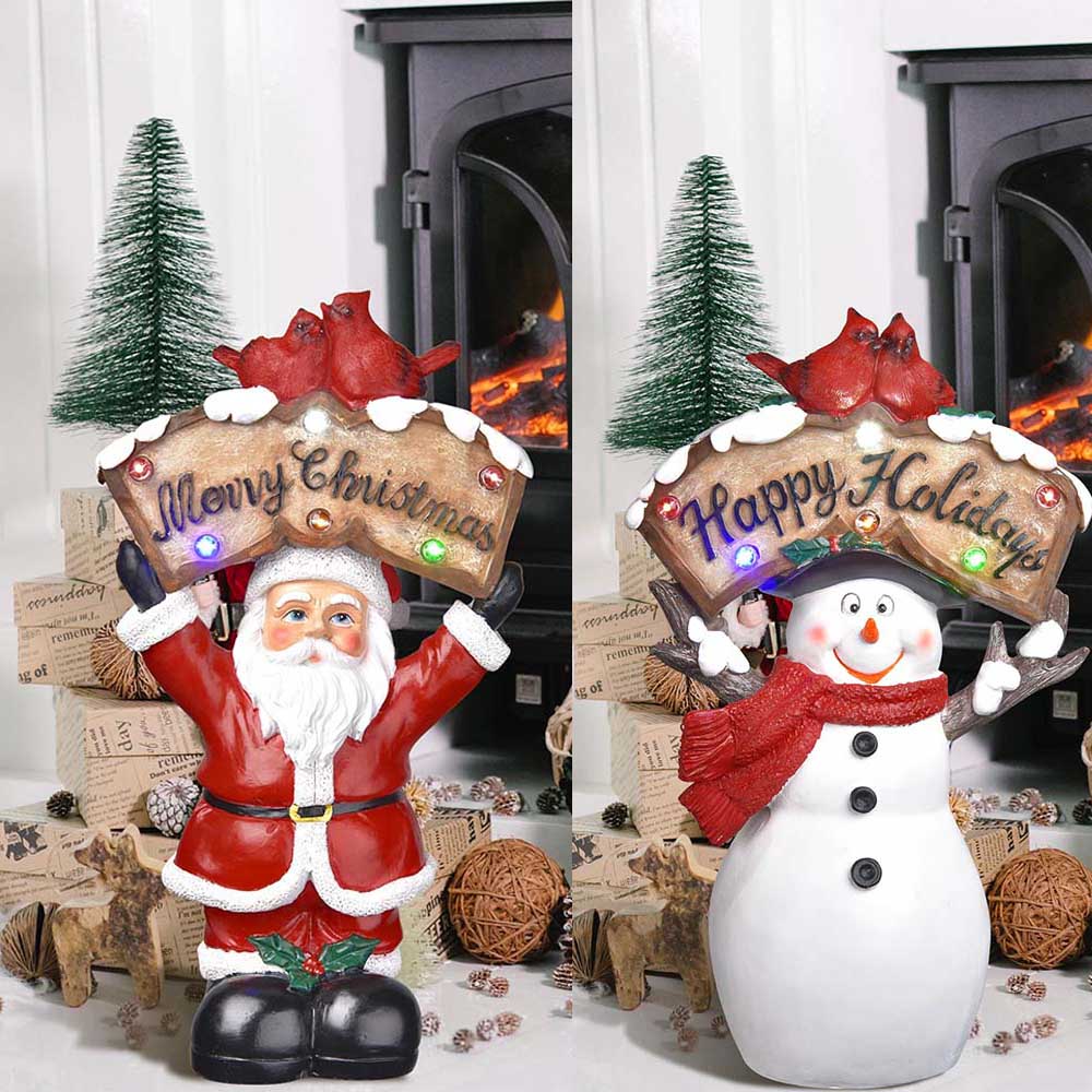 - Tabletop Christmas Decoration Light- 7"x4"x12" Light features beautifully hand-painted Santa or Snowman figurine holding Merry Christmas sign with LEDs overhead, one button to light up and fill your room with Christmas miracle, perfect decoration to boost your holiday spirits, also ideal gift for your friends & family