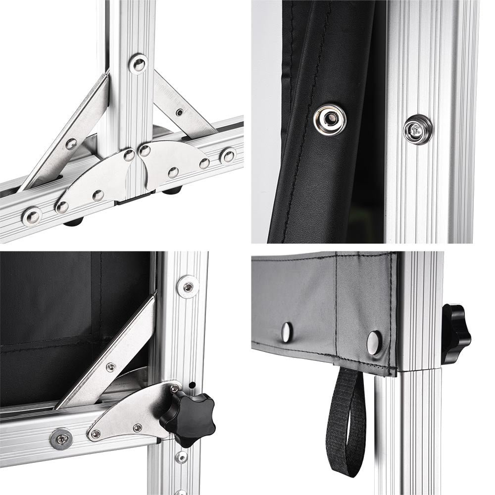 - Material: Aluminum stand frame + Multi-layer PVC screen