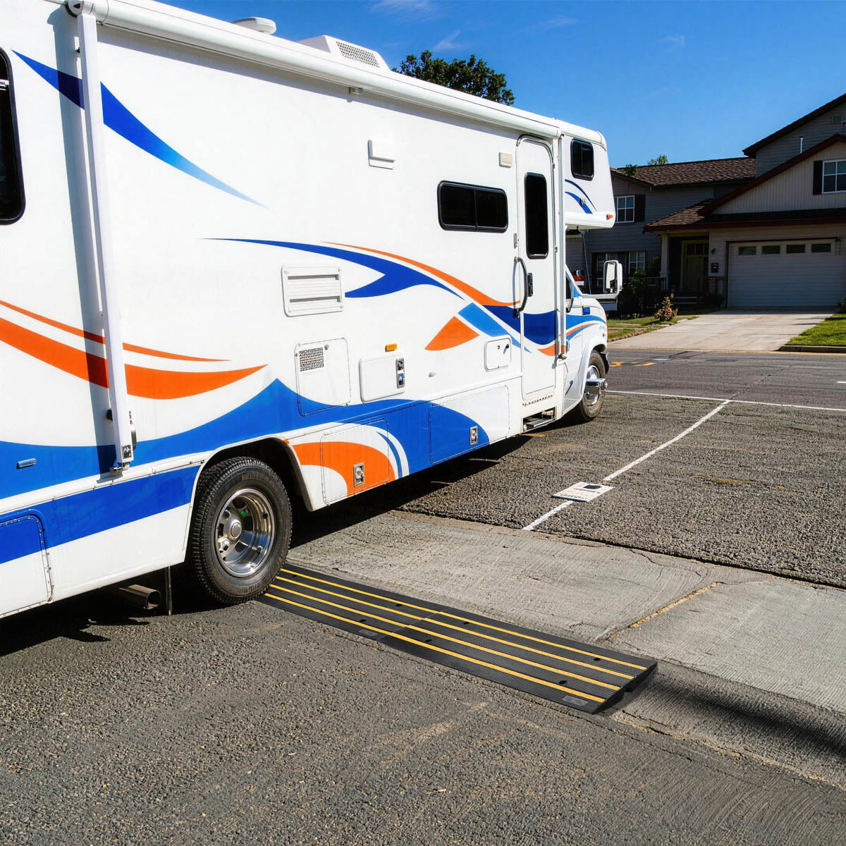 - High Visibility & Safety - The yellow safety stripes ensure nighttime visibility, while the textured, non-slip surface provides exceptional tire grip. The shock-absorbing bottom guarantees a stable, vibration-free crossing that feels as solid as the road itself