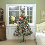 Flock Christmas Tree White with hundreds of realistic PVC tips to create a dense, full-bodied and lifelike look, features metal hinged structure with a stand for making assembly quick and easy, perfect choice for your home decoration to embrace Christmas spirit.